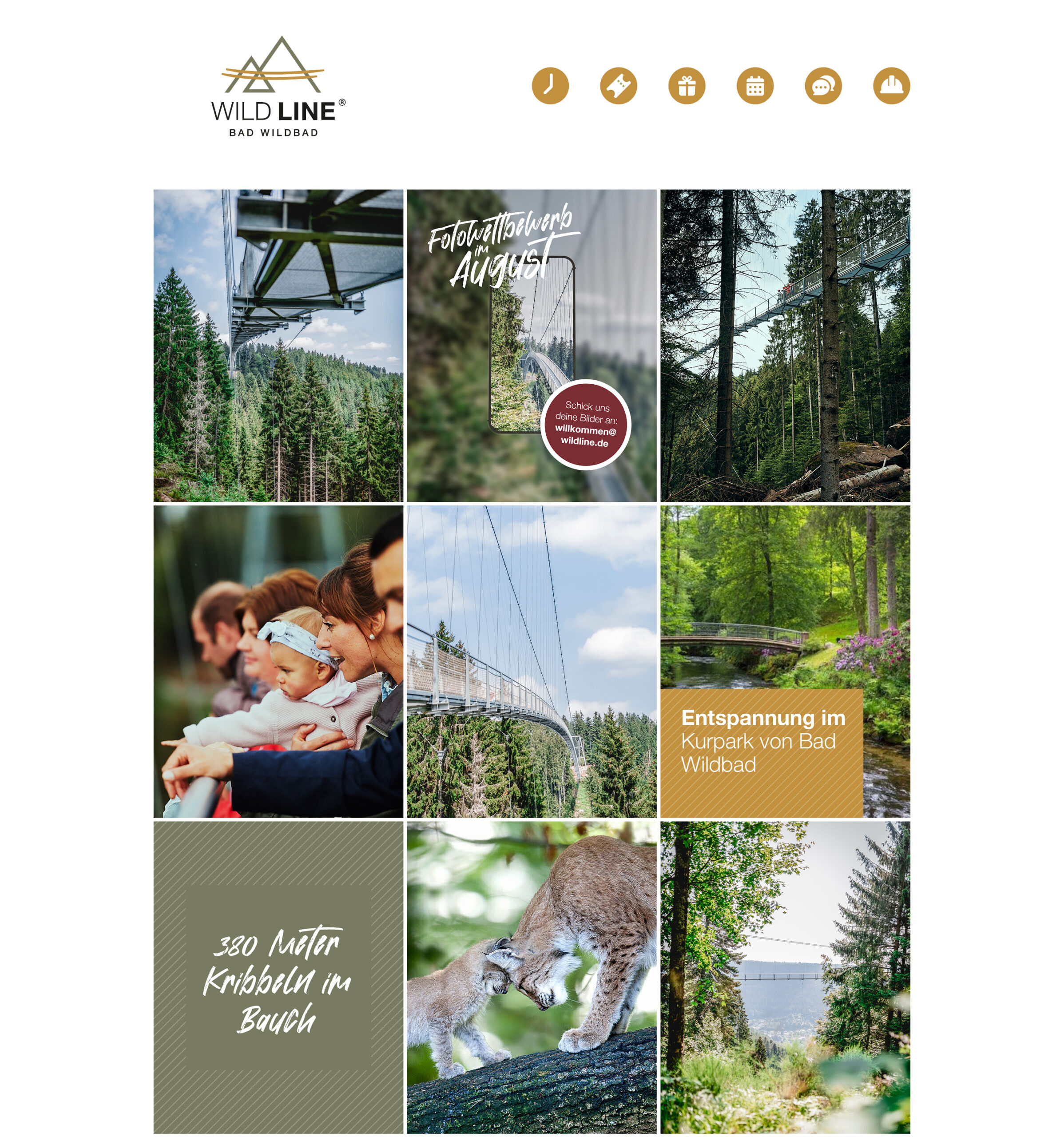 Die Primärfarbwelt jeder Hängebrücke besteht aus einer Hauptfarbe und einer individuellen Charakterfarbe. Die drei Hauptfarben ähneln sich, da sie eine Iteration der Farbe Olive sind und sind für den einheitlichen Auftritt der Brücken – die visuelle Zusammengehörigkeit – zuständig. Symbolisieren dem Markenkernwert „Naturnähe“. Die unterstützenden Charakterfarben unterscheiden sich dagegen stärker. Sorgen für Differenzierung. Und spiegeln aufgrund der Farbintensität den Markenkern „Lebendigkeit“ wider.