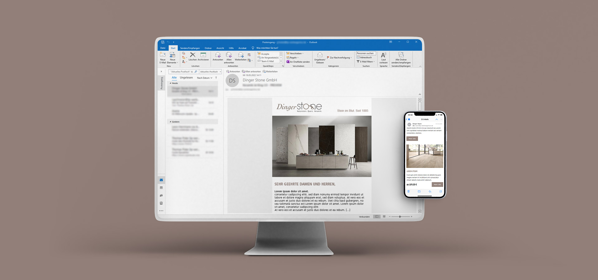 Eine hochwertige Produktwelt verdient eine hochwertige Präsentation. Das Design der Imagebroschüre überzeugte nicht nur Dinger Stone, sondern auch die Jury des German Brand Awards.
