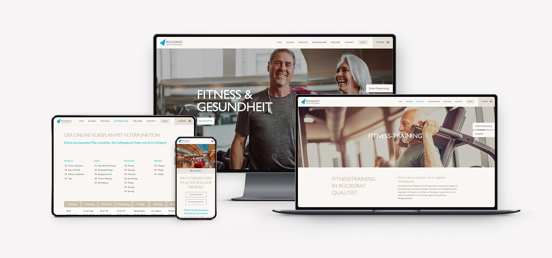 Ebenfalls mit Herz und Verstand haben wir die neue Webseite konzipiert, gestaltet und auf Basis des CMS WordPress umgesetzt. Ziel des neuen Auftritts war es, ein auf die Zielgruppe und die Leistungen des Fitness-Studios abgestimmtes Design zu kreieren: eine Kombination aus Fitness, Gesundheit und Wellness. Mit plakativen, emotionalen Bildern, warmen und gedeckten Farbtönen sowie einer klaren, filigranen Typographie wurde unter Berücksichtigung des vorhandenen Corporate Designs ein komplett neuer, visueller und moderner Relaunch vollzogen.